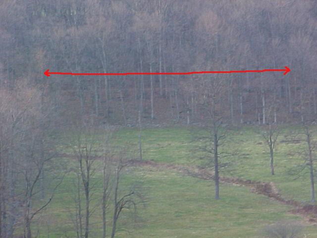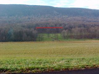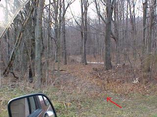 A ways past the Indian Springs area, standing on Black Valley Road, the right-of-way can be seen in some places where it travels through the woods.