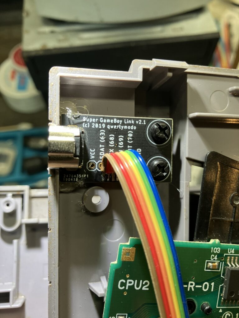 While I don’t mess around with Game Boy games all that often anymore, I’m always open to pissing around and modifying something just to do it. In the case of the SGB, I had found out that the first version of it (and the only version we got of it in the USA) actually ran slightly faster than the original GameBoy, and there was a mod available for the SGB to correct this. The original SGB also excluded the link port and capability of connecting it up with another unit. Not that I ever had the need to link 2 Game Boy systems together, let alone with the SGB, but finding out that I could add this functionality made me want to do it.